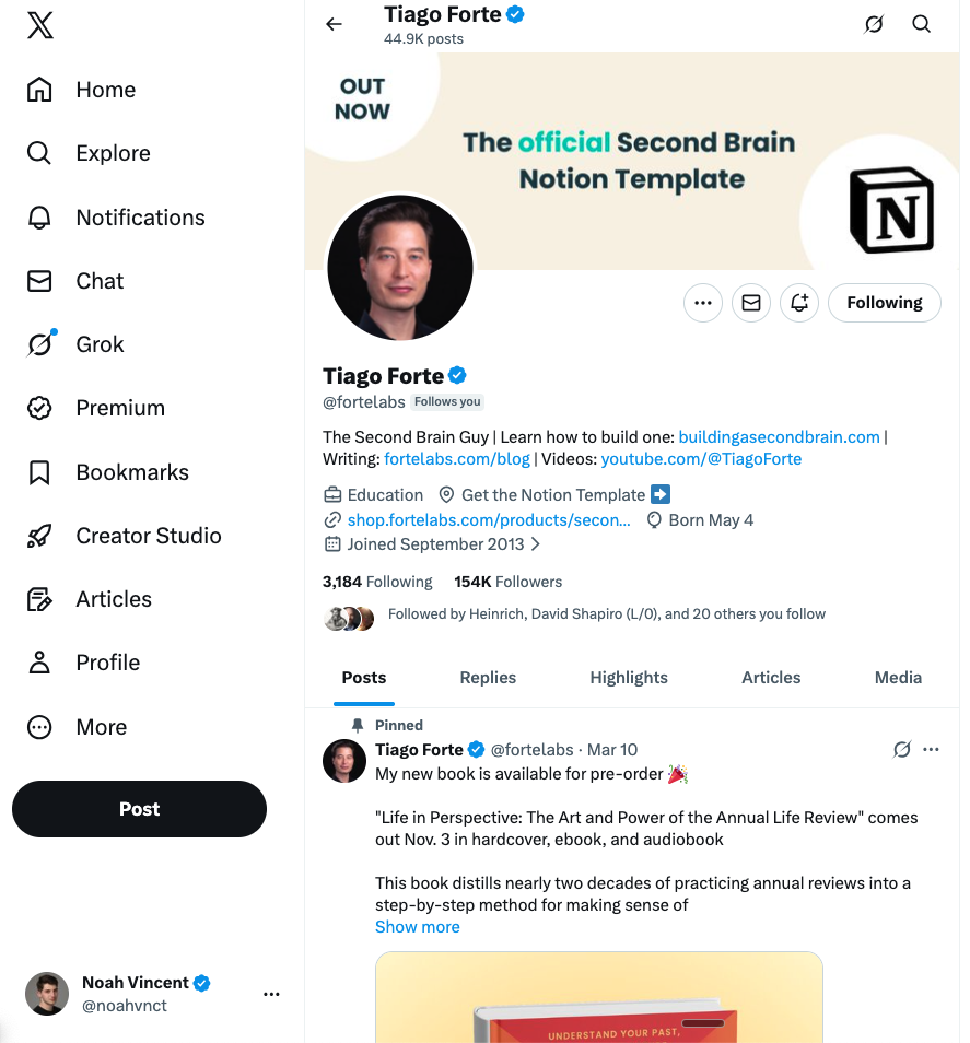 I never would have imagined, a year ago when I started, that I'd end up being followed by Tiago Forte himself.